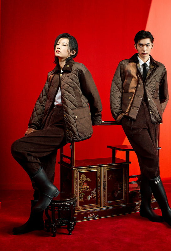 Where British countryside meets Eastern mysticism. The collaboration reimagines Barbour’s iconic silhouettes through the lens of ancient folklore and Feng’s emotionally charged design language.